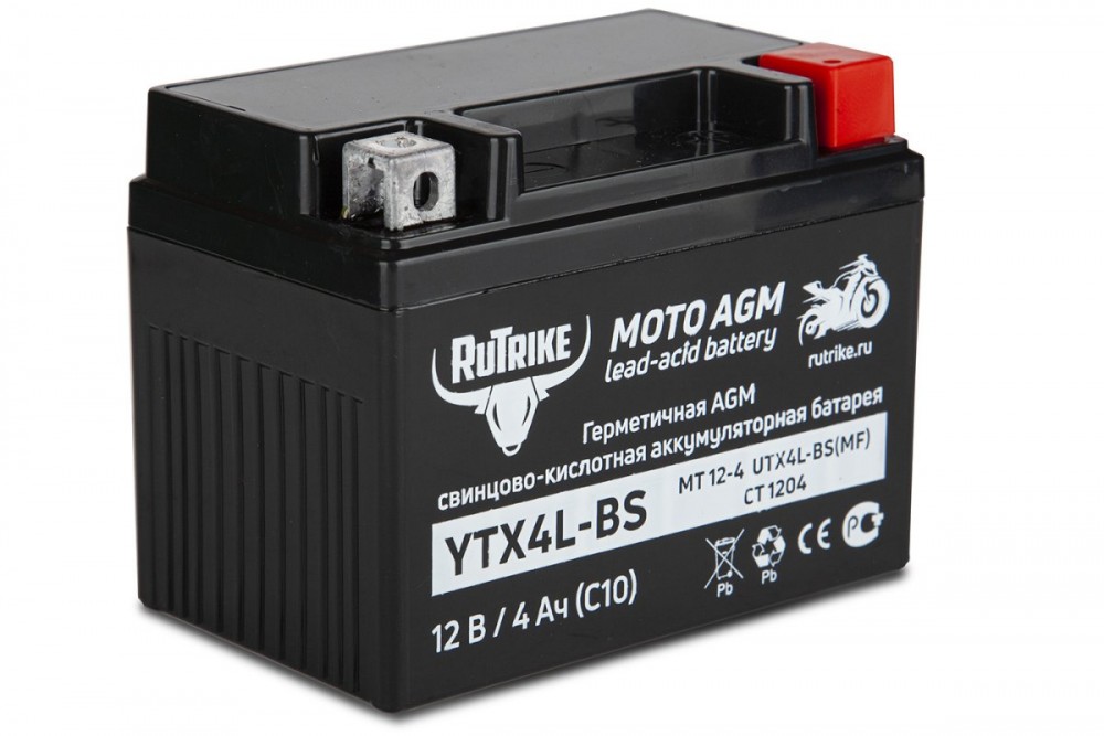 Аккумулятор стартерный для мототехники Rutrike YTX4A-BS (12V/2,5Ah) (YTR4A-BS, CT 12026, MT 12-2.6)