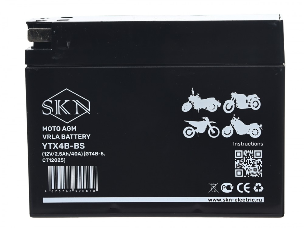Аккумулятор для мототехники SKN LiFePO4 YTX4L-BS (12V/4Ah/50A) [UTX4L-BS, CT 1204, MT 12-4]