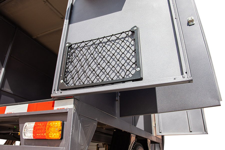 На данной электрической тележке можно перевозить товары не только непосредственно внутри кабины, но и наверху. На специально установленных рейках, к примеру, можно зафиксировать спортивный инвентарь (лыжи, сноуборды).