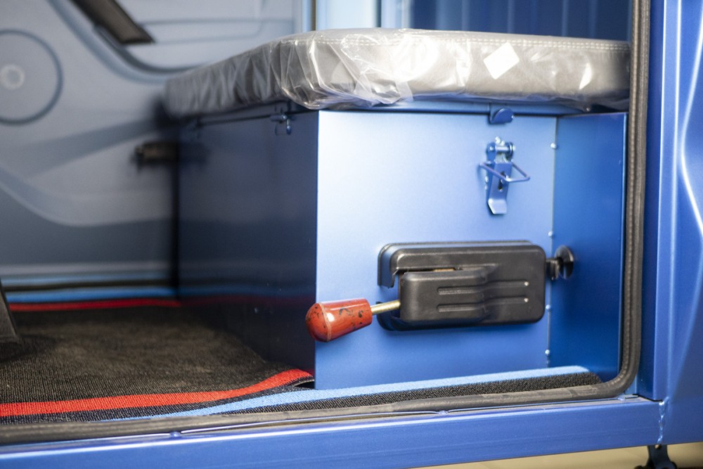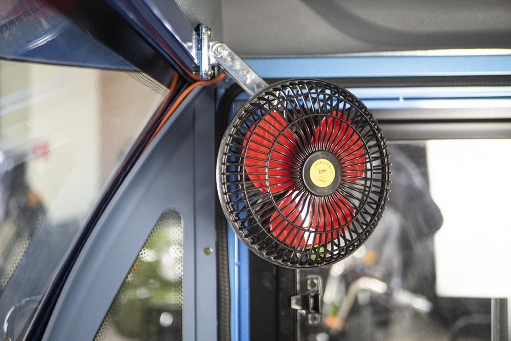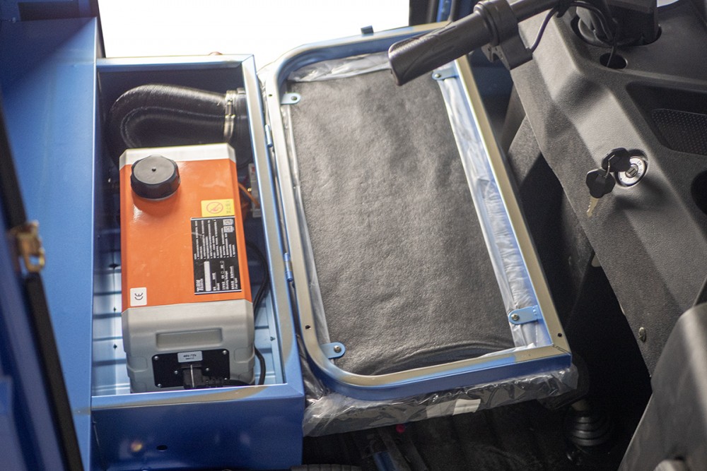 Трицикл оснащён герметичной кабиной, защищающей от непогоды. Под сиденьем водителя расположен дизельный обогреватель салона, который запускается и регулируется пультом дистанционного управления. Ветровое стекло также оборудовано обогревателем и снабжено стеклоочистителем. Под задним бортом кузова располагается камера заднего вида, изображение с которой выводится на дисплей в кабине водителя. Также в панель встроены динамики и мультимедиа, при помощи которой можно воспроизводить музыку, файлы со смартфона (bluetooth) или с внешнего источника (по USB).