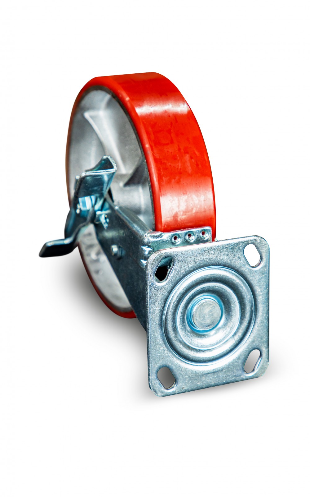 Колесо большегрузное поворотное SCpb 42 100 мм полиуретановое с тормозом (F)