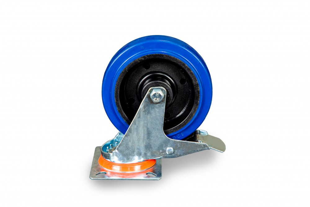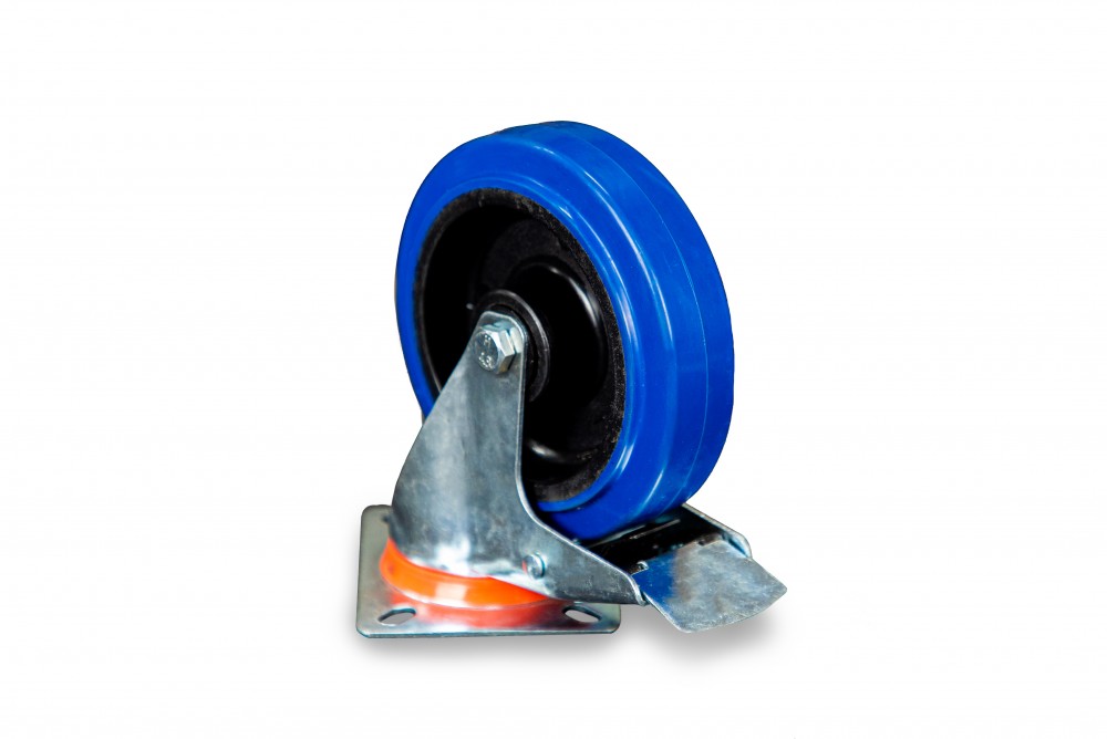 Колесо поворотное из эластичной резины MW70 100 мм с тормозом