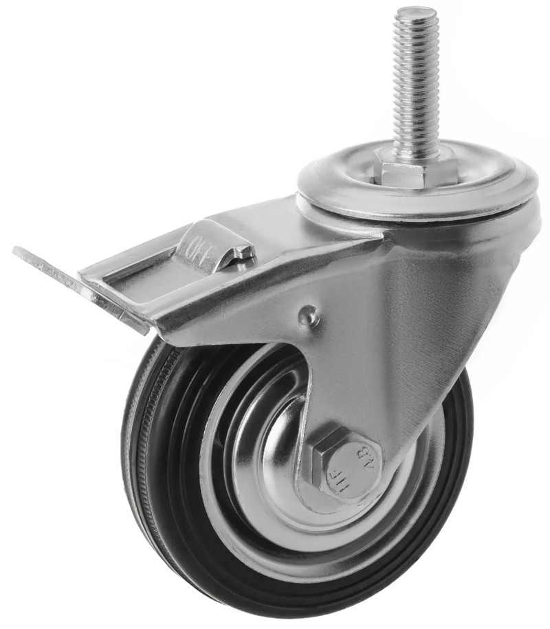 Колесо поворотное SCtB 42 100 мм резина с болтом и тормозом (F)