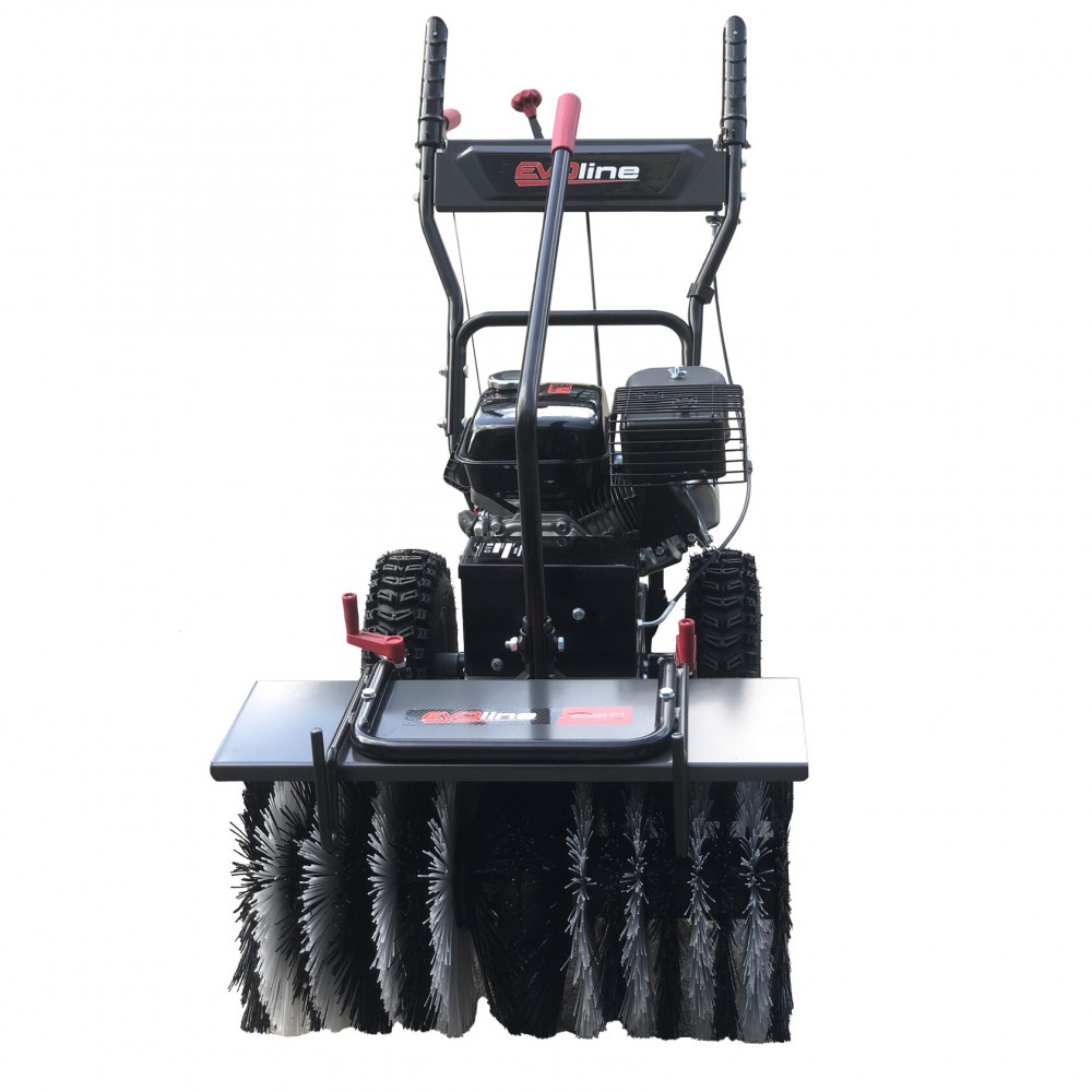 Преимущества EVOline SWG 620: ✓ двигатель ZONGSHEN 168 FB, адаптированный для работы в холодное время года, макс.мощностью* 6,5 л.с. с ручным запуском; ✓ самоходная трансмиссия с фрикционным диском, имеющая 6 скоростей вперед и 2 назад (переключение осуществляется рукояткой рядом с пользователем); ✓ колёса с глубоким зимним протектором, размером 33х13 см; ✓ высота (диаметр) щетки – 35 см; ✓ сила прижима щетки к поверхности устанавливается с помощью двух опорных колёс «рояльного» типа; ✓ щетка имеет три положения (направления) подметания (прямо, влево и вправо), которые устанавливаются рычагом выведенным ближе к пользователю; ✓ в передней части щеточного узла расположены крепления для установки навесного оборудования.