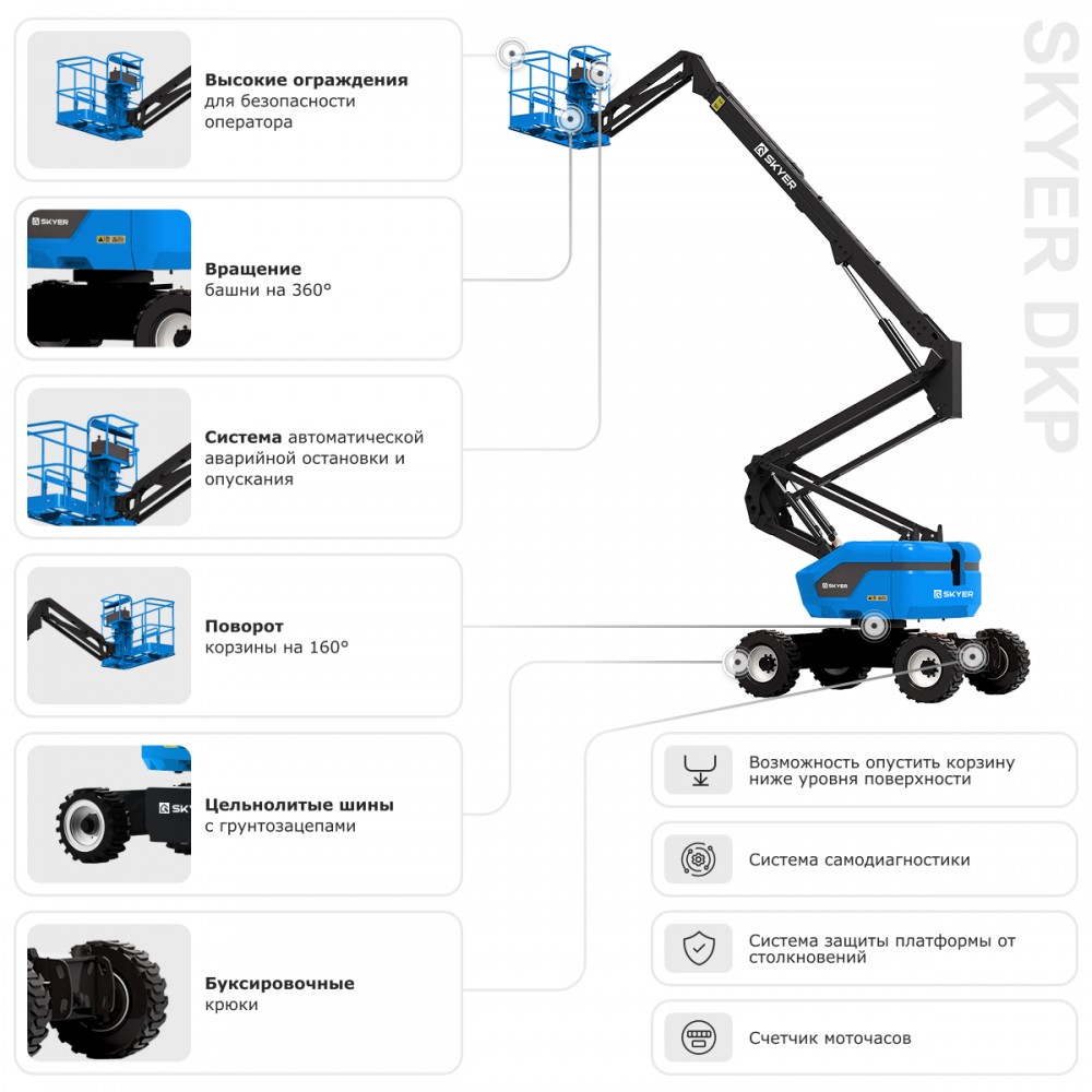 Дизельный коленчатый подъемник SKYER DKP2025 — автономный гигант для уличных работ!