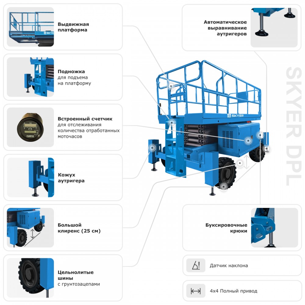 Дизельный подъемник SKYER DPL1436 — мощность и автономность для уличных работ!