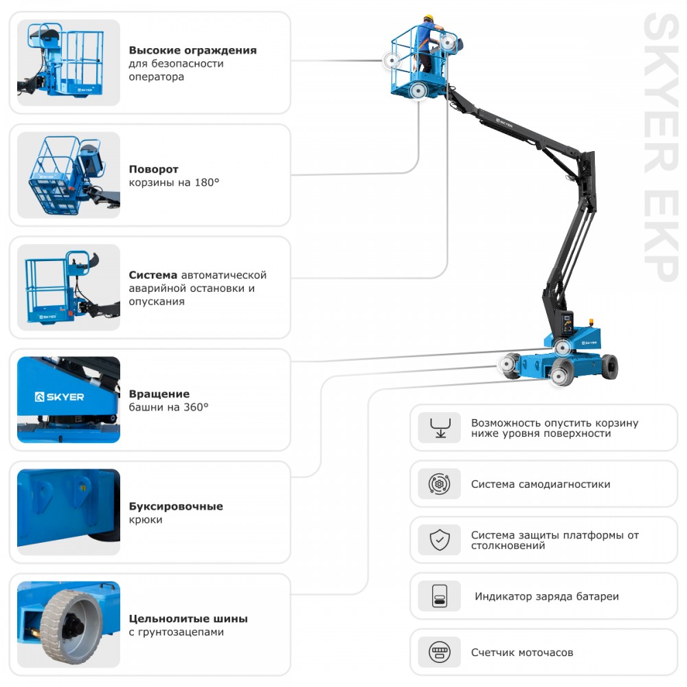 Коленчатый подъемник SKYER EKP1423 — дотянется везде!