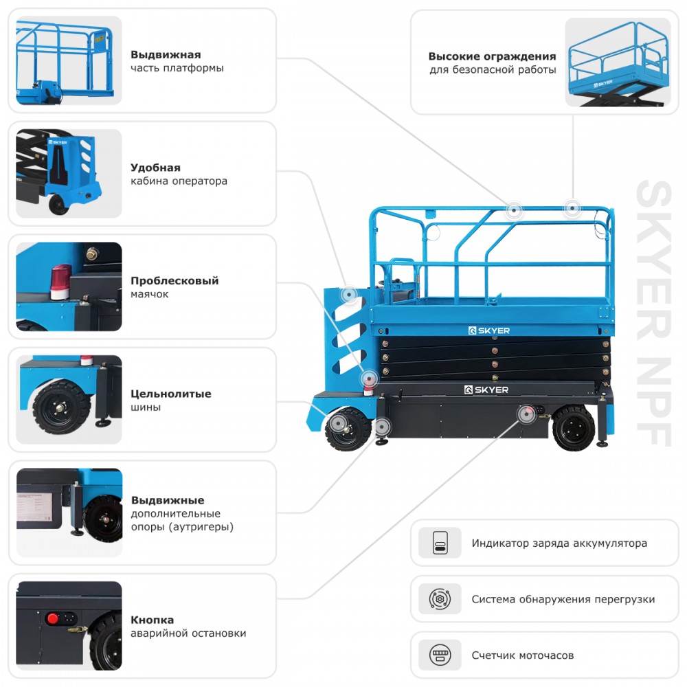Подъемник NPF1305 — профессиональное решение для тех, кто ценит комфорт, безопасность и автономность при работе на высоте.
