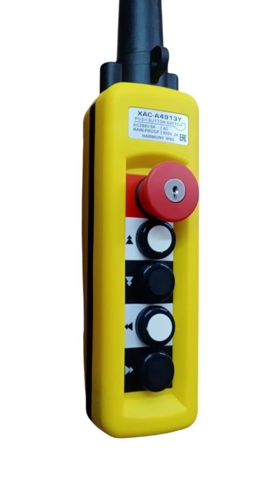 Пульт управления XAC-A6713Y для тали (6 кнопок, 1 скорость, ключ-марка, стоп, IP65, 380В)