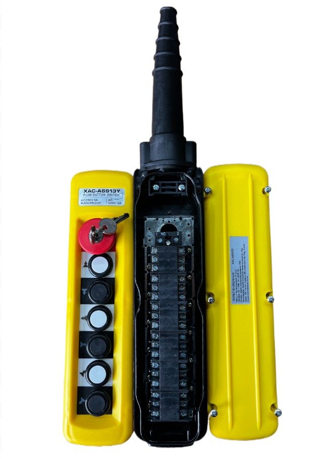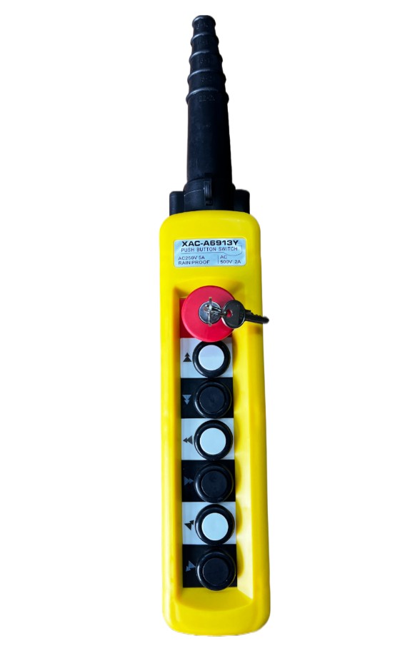 Пульт управления XAC-A6713Y для тали (6 кнопок, 1 скорость, ключ-марка, стоп, IP65, 380В)