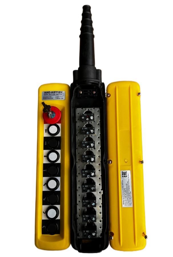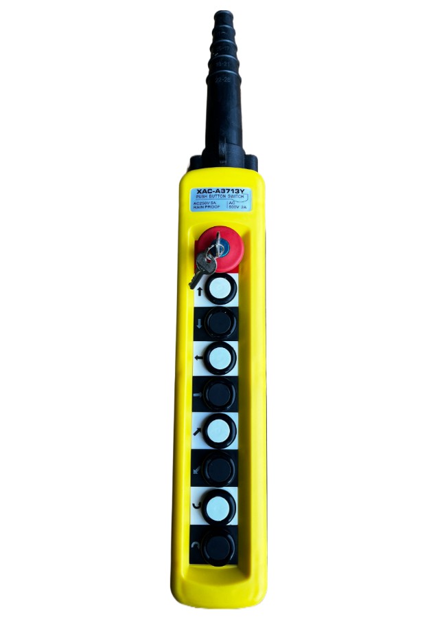 Пульт управления XAC-A6913Y для тали (6 кнопок, 2 скорости, ключ-марка, стоп, IP65, 380В)