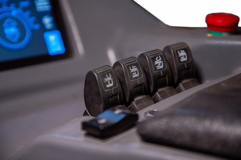 - Датчик присутствия оператора OPS блокирует движение и функции спуска/подъема, если в водительском кресле нет оператора.