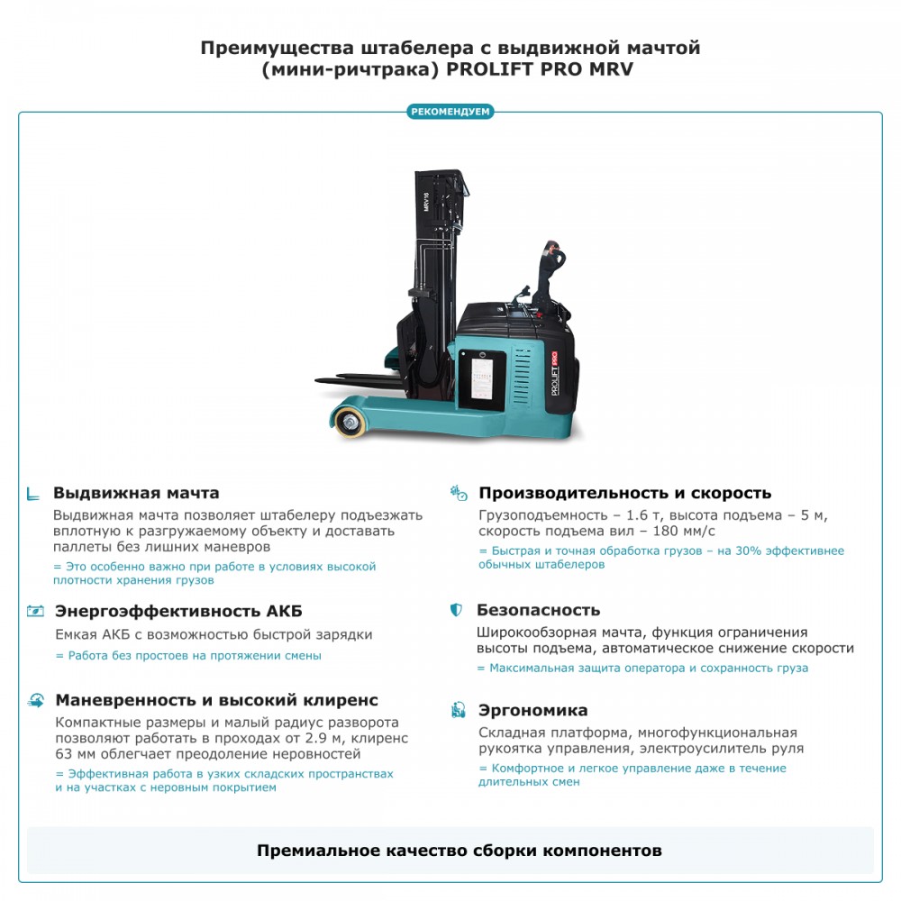 Штабелер с выдвижной мачтой (мини-ричтрак) PROLIFT PRO MRV 2035 li-ion