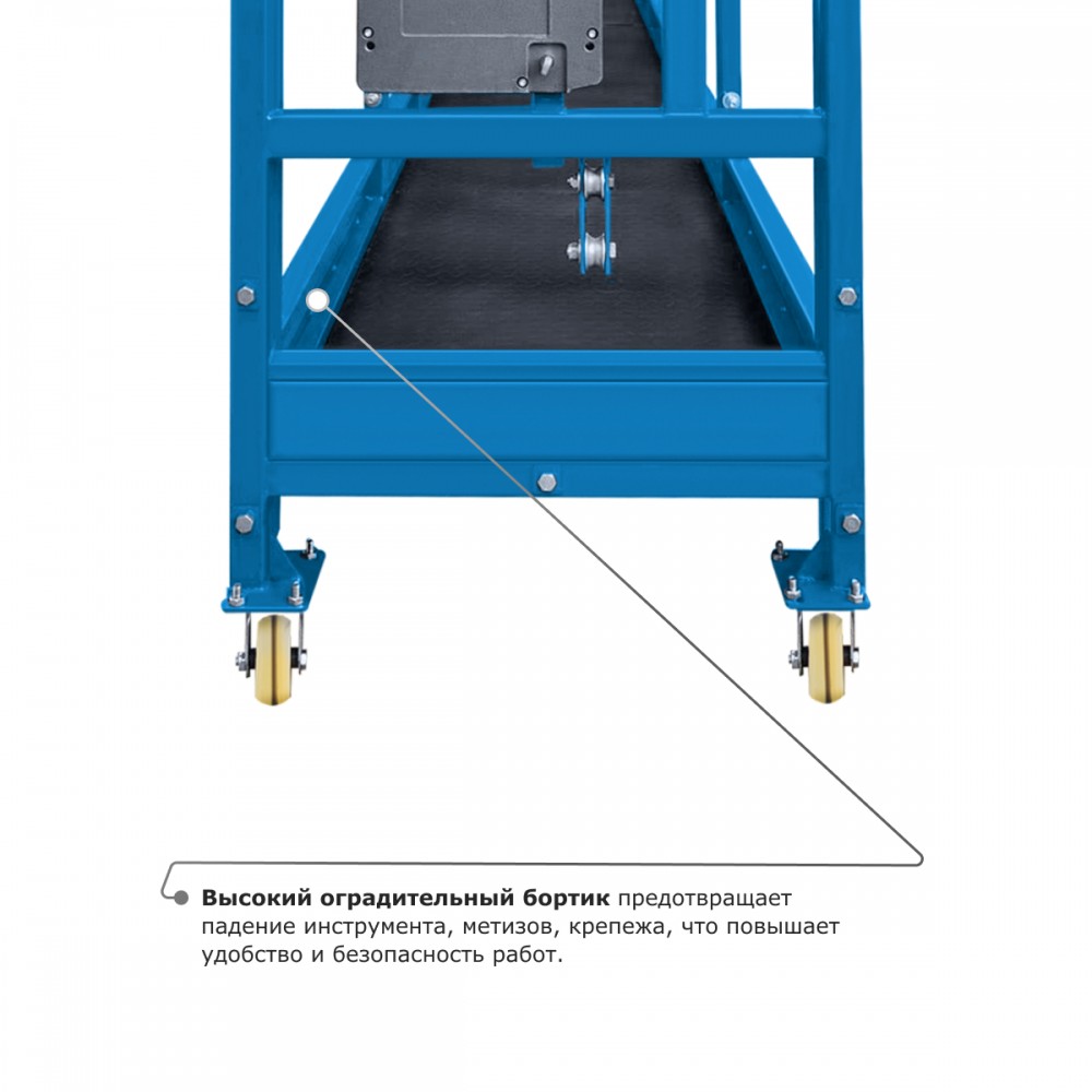 Высокий оградительный бортик предотвращает падение инструмента, метизов, крепежа, что повышает удобство и безопасность работ.