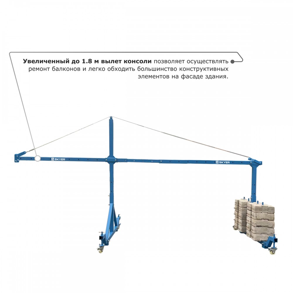 Увеличенный до 1.8 м вылет консоли позволяет осуществлять ремонт балконов и легко обходить большинство конструктивных элементов на фасаде здания.