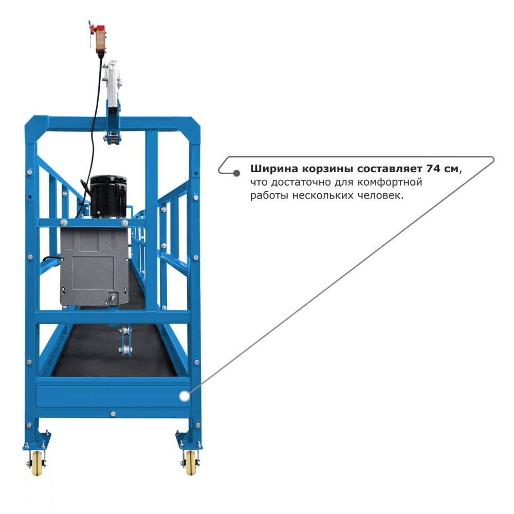 Ширина корзины составляет 74 см, что достаточно для комфортной работы нескольких человек.
