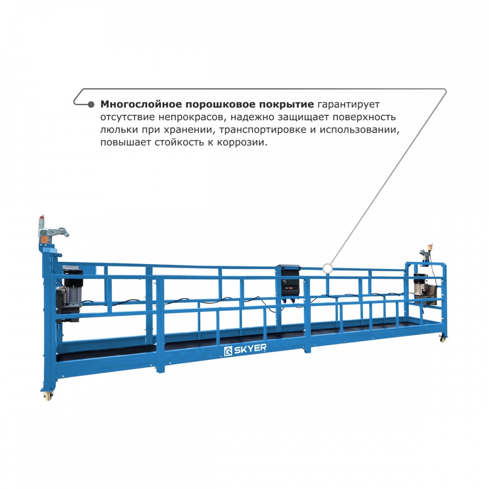 Многослойное порошковое покрытие гарантирует отсутствие непрокрасов, надежно защищает поверхность люльки при хранении, транспортировке и использовании, повышает стойкость к коррозии.