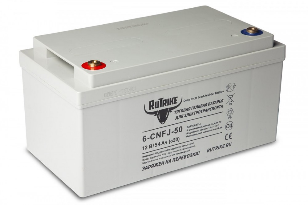 Зарядка должна осуществляться оригинальным зарядным устройством Rutrike, или проверенным, соответствующим характеристикам устройством заводского изготовления в соответствии с инструкцией к этому зарядному устройству и требованиями к напряжению и силе тока. Зарядное устройство должно быть импульсным, полностью автоматическим, с функцией десульфатации пластин, специально предназначенное для тяговых аккумуляторных батарей.