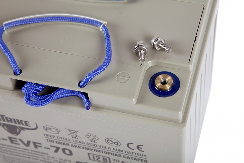 Rutrike 6-EVF-70 - необслуживаемая аккумуляторная батарея с системой рекомбинации газов (VRLA) произведенная по технологии AGM. Батареи выполнены по технологии внутреннего формования. В свинцовых пластинах, имеющих большую толщину по сравнению со стандартными аккумуляторами, используется экологичный запатентованный сплав без кадмия и мышьяка. Плотный сепаратор из углеволокна пропитан электролитом, изготовленным по технологии NANO GEL. Электролит находится в сгущенном состоянии, не даёт утечек и не требует долива воды на протяжении всего срока эксплуатации.