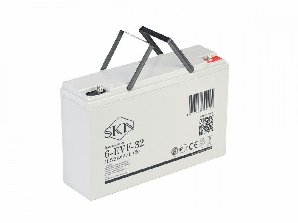 SKN 6-EVF-32 – это необслуживаемая аккумуляторная батарея, изготовленная по технологии AGM с системой рекомбинации газов (VRLA). Батарея произведена с использованием технологии внутреннего формования. В её свинцовых пластинах, которые имеют увеличенную толщину по сравнению со стандартными аналогами, применяется экологичный запатентованный сплав, не содержащий кадмия и мышьяка. Сепаратор из плотного углеволокна пропитан электролитом, созданным по технологии NANO GEL. Электролит находится в сгущенном состоянии, что исключает утечки и необходимость долива воды на протяжении всего срока службы.