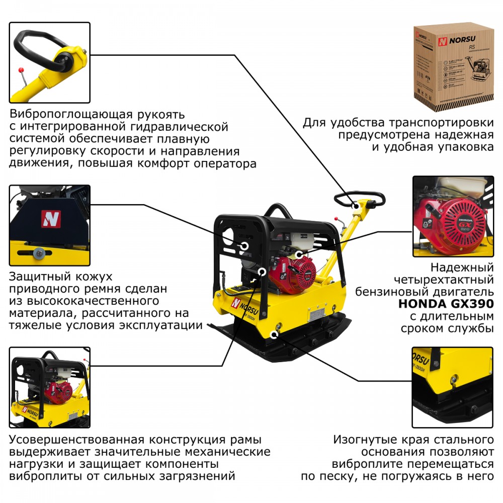 Виброплита бензиновая реверсивная NORSU RF-350H